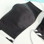 すっきりとしたシルエットの立体型マスク、裏地に黒のダブルガーゼ、マスクゴムはちょっとレアなグレーを使用。